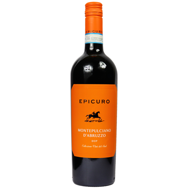 De Epicuro Montepulciano D'Abruzzo heeft een mooie robijnrode kleur met paarse hints en intense aroma’s van kersen en groene kruiden. Vol van smaak en mooi in balans. Echte zwoele Italiaan met warm en rond karakter.