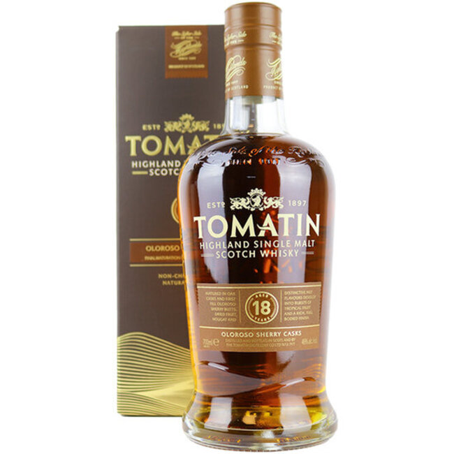 Tomatin 18 Years Oloroso Sherry Casks 70cl 46% is een Highland Single Malt Scotch Whisky. Door de rijping in een koele en stabiele omgeving, hoog boven zeeniveau, komen de subtiele smaken van deze whisky goed naar voren. De zorgvuldig geselecteerde vaten zorgen ervoor dat het zachte karakter van de whisky nooit overschaduwd wordt.